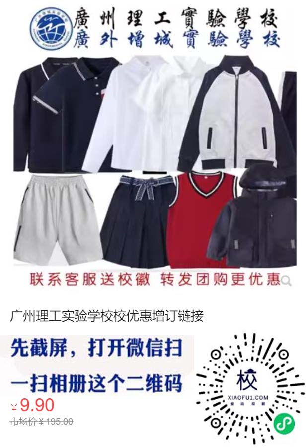 其次还有广外附属增城实验学校,现在已改名为广州理工实验学校的校服也非常有特色,分为男女两个款式,均设有夏季礼服、运动服 、 春秋礼服、春秋运动服和冬装冲锋衣,同时男女学生还有专属配套的领结、领带、书包、拎包等服饰用品。